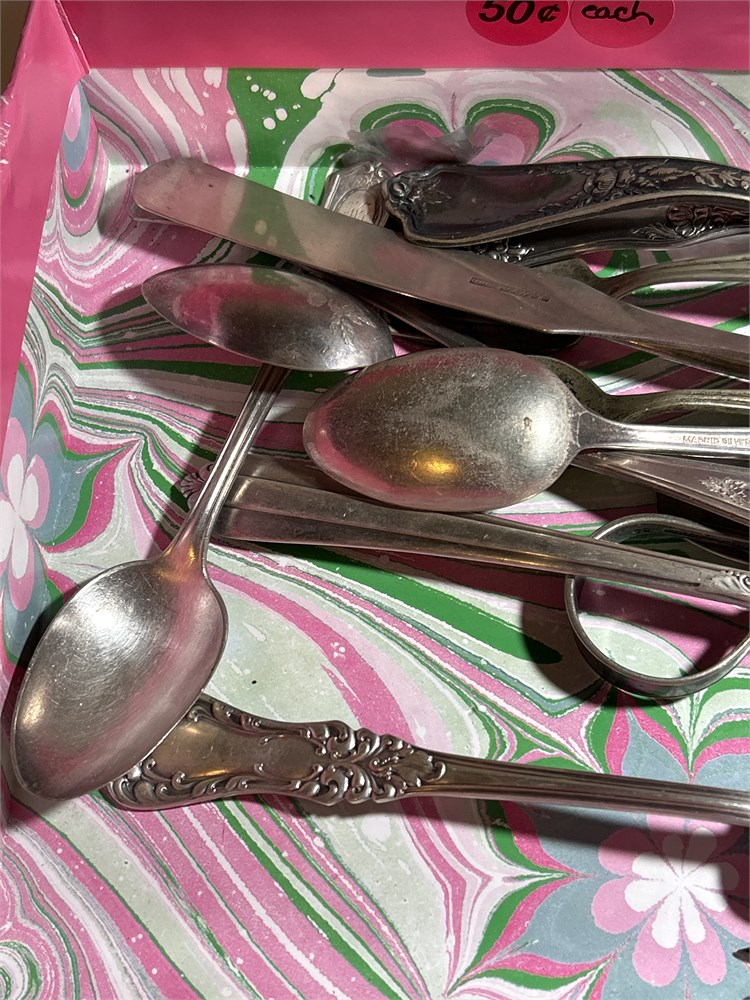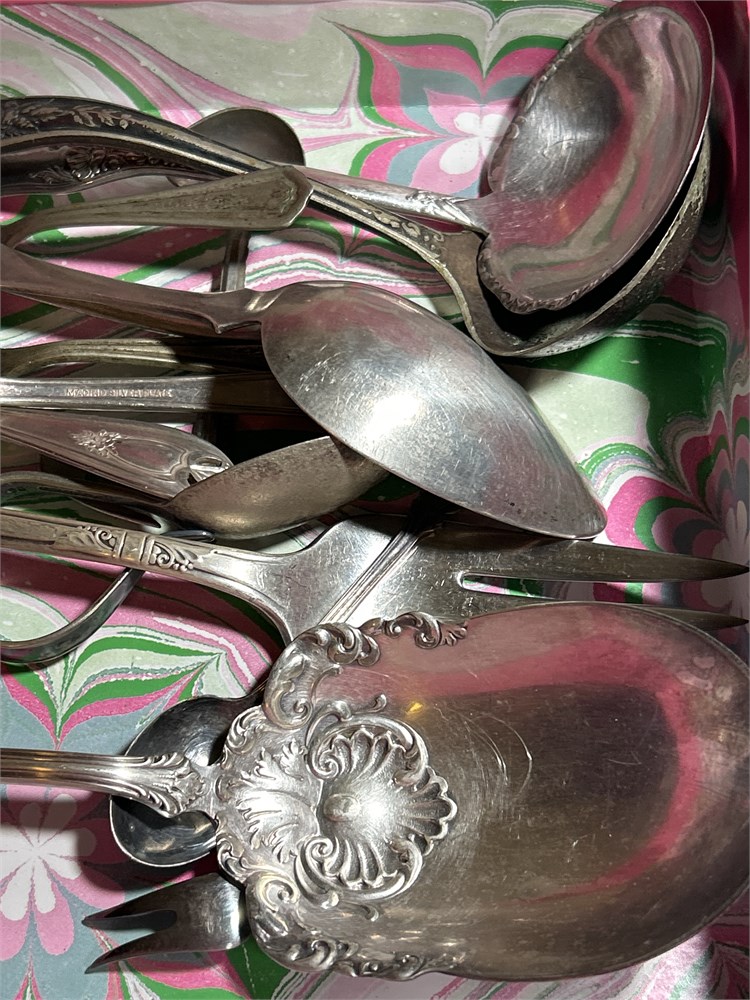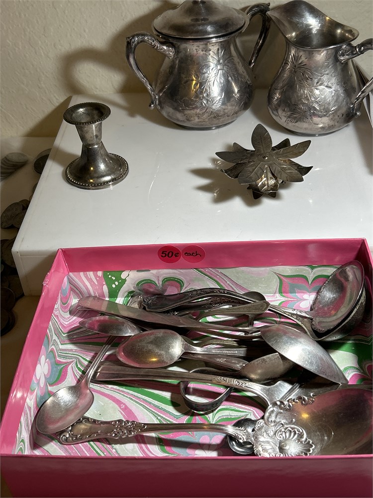 Assortment of silver plate, silverware, and pots(C99)