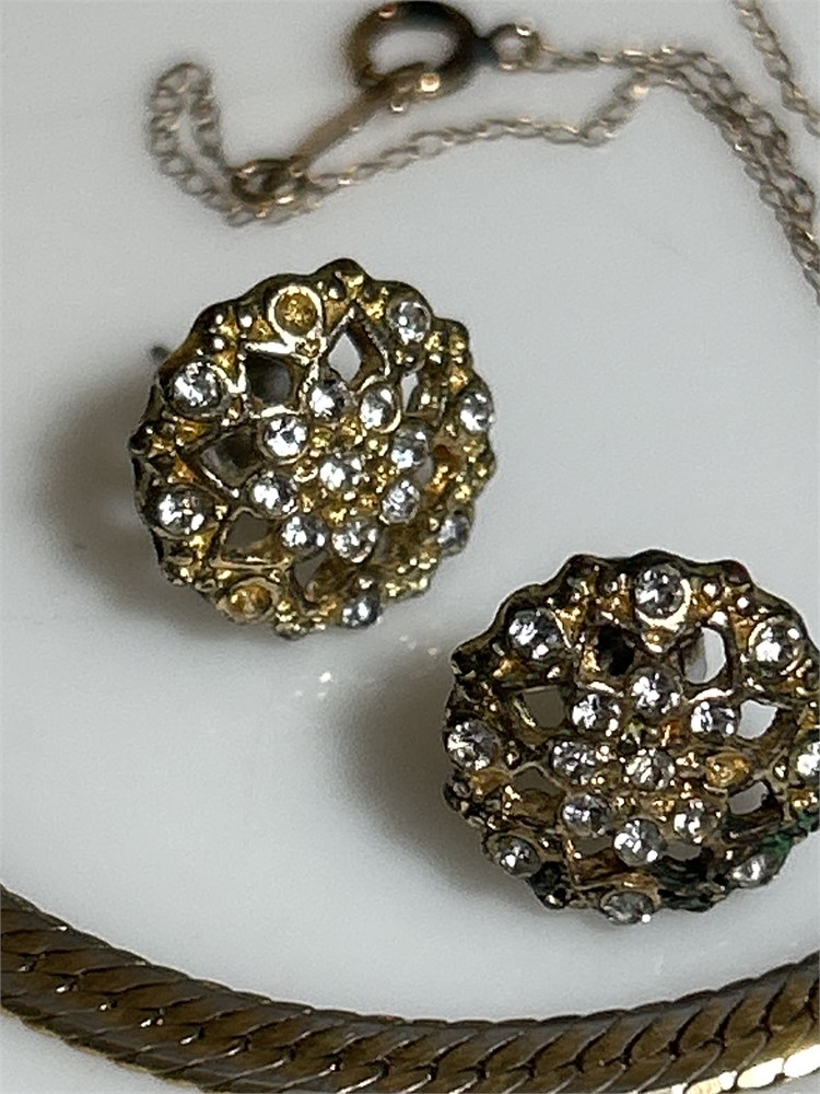 Go to bangle bracelets, Silvertone bangle bracelets, really nice chain and stones earrings and pens. Look at the pictures. People tell a story.