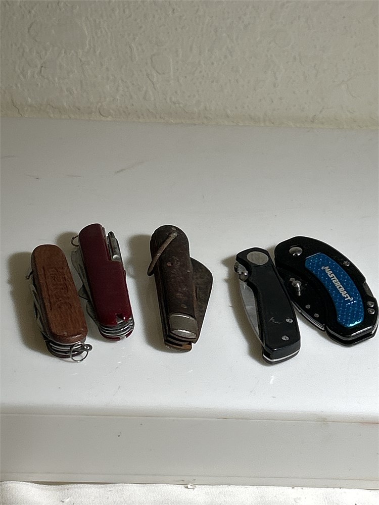 Assortment pocket knives, razor, , knife, straight nose, Boy Scout, camping, knives