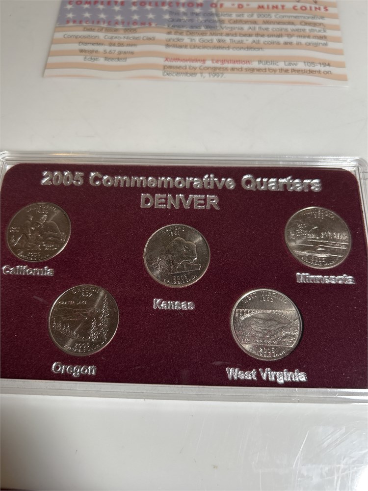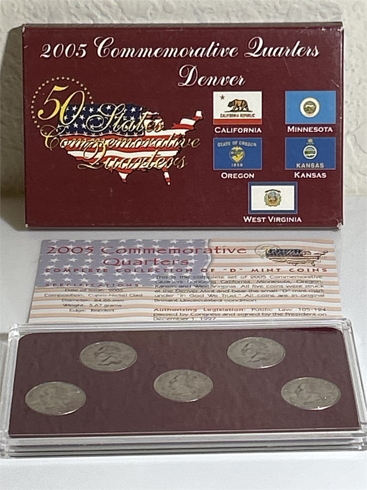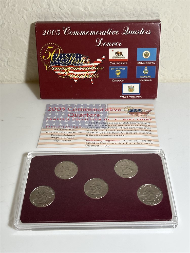 2005 D Commemorative Quarters Denver, California, Minnesota, Oregon, Kansas, West Virginia, Virginia uncirculated with the original paperwork