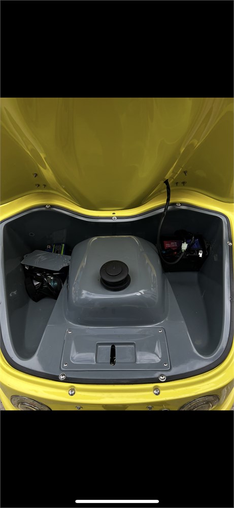 2016 Panther 50 Scoot Coupe is a three-wheeled, two-passenger, moped-style vehicle manufactured by Panther Motors. Powered by a 49cc engine, it has a top speed of approximately 30 mph and is often used for rentals and local touring in tourist areas. It features automatic transmission, safety features like seatbelts, and is designed to be more fuel-efficient and maneuverable than a traditional car.