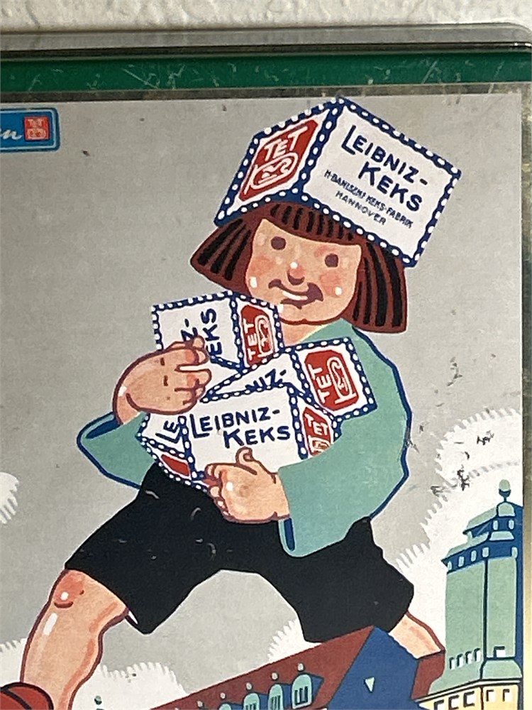 VINTAGE Leibinz Keks Cookie Tin Original Advertising 9.5" x 7.25" x 2.5"(L)