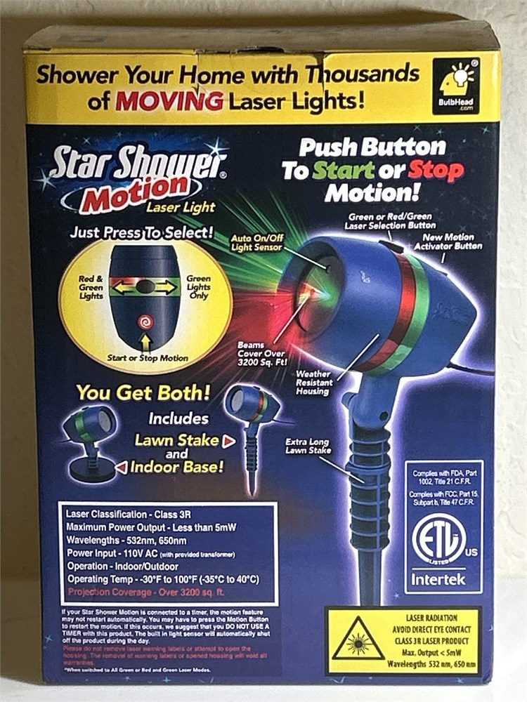 BulbHead Star Shower Motion Laser Light Projector (L)