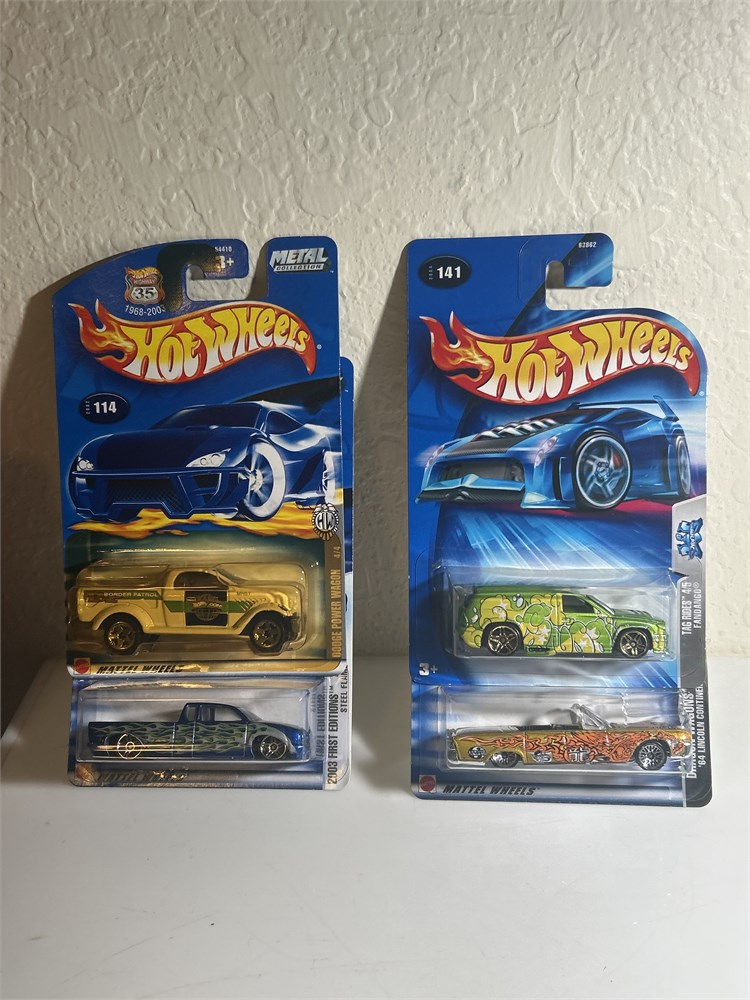 Hot Wheels Miscellaneous Series Dodge power wagon, first edition, 2003 steel flame, tag ride and dragon wagon 64 Lincoln