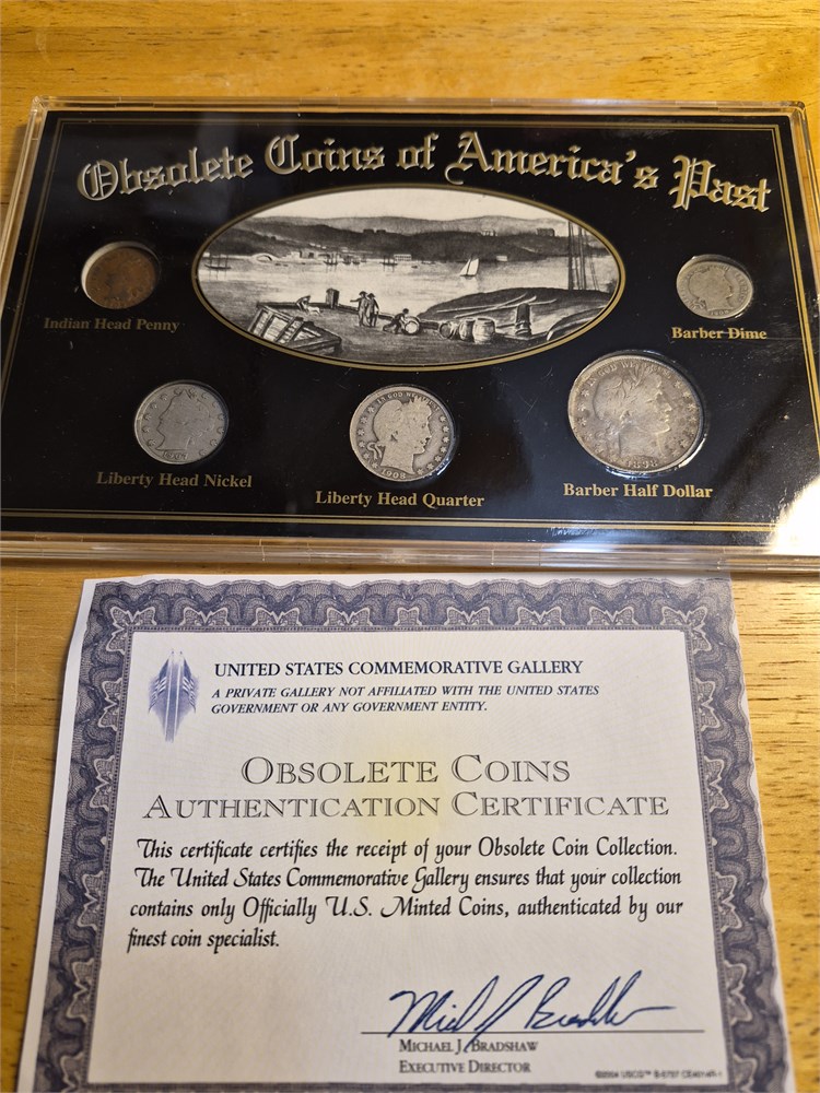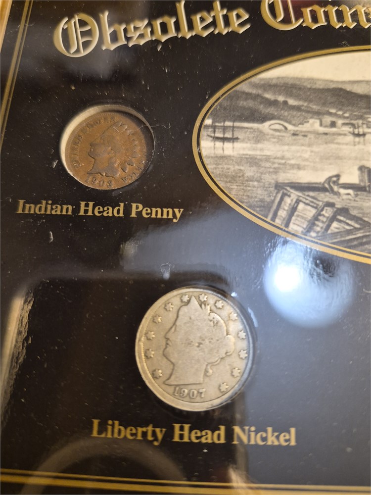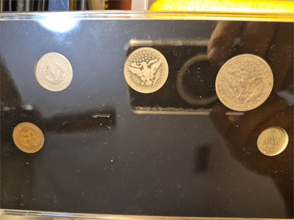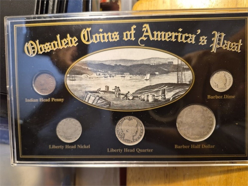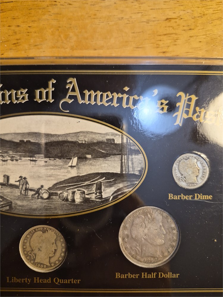 Obsolete coins of America's past. Includes 1903 Indian headset, 1907 Liberty Head nickel, 1908 Liberty headquarter, 1898 Barber half dollar and 1908 Barber dime.