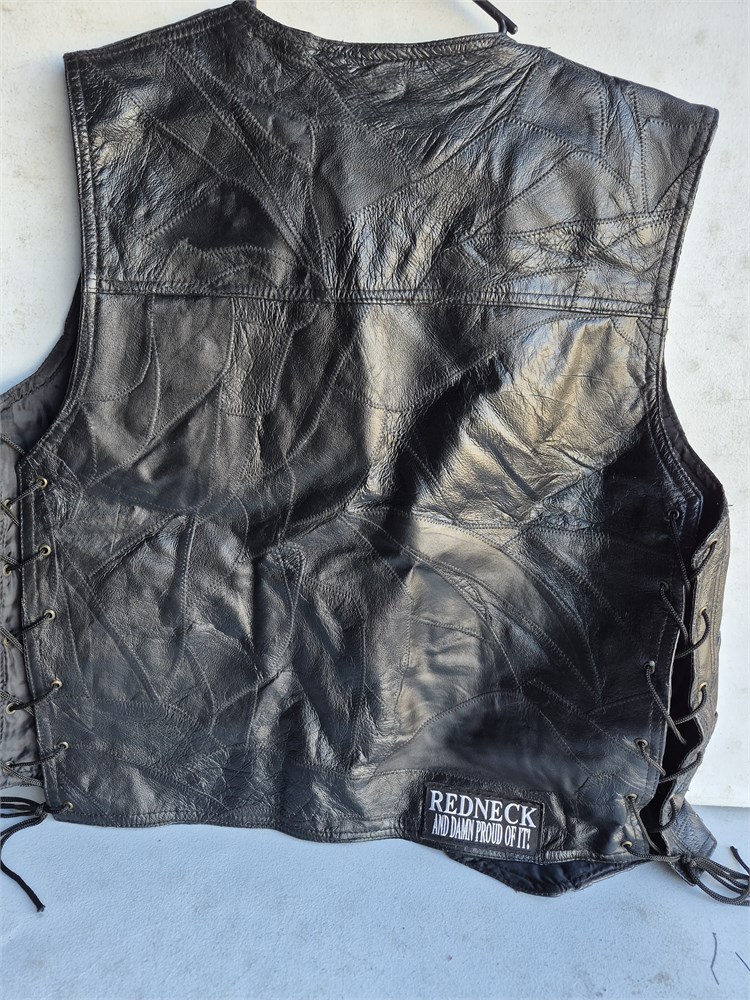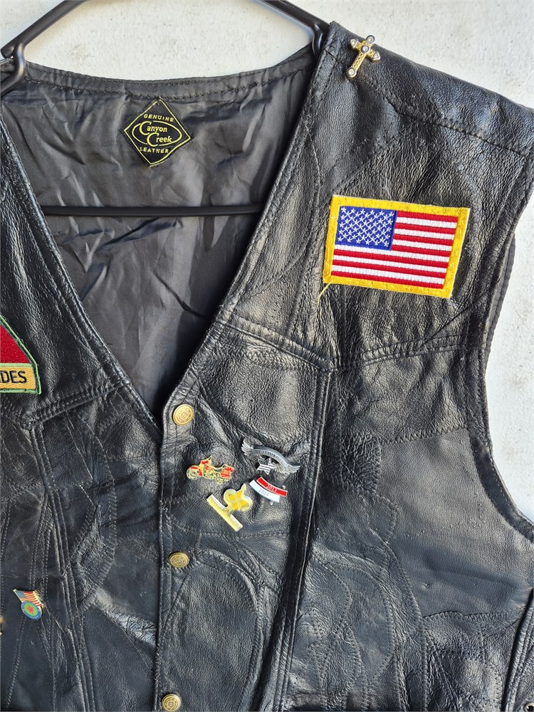 Canyon Creek genuine leather extra large vest. Vest includes patches and buttons.