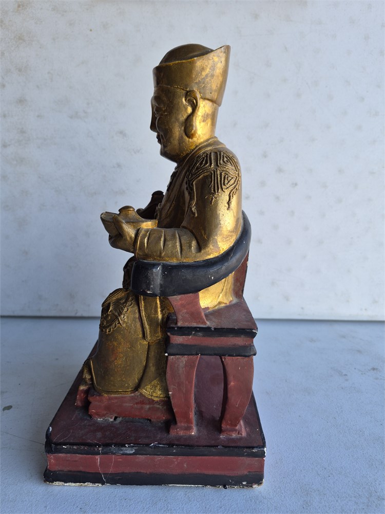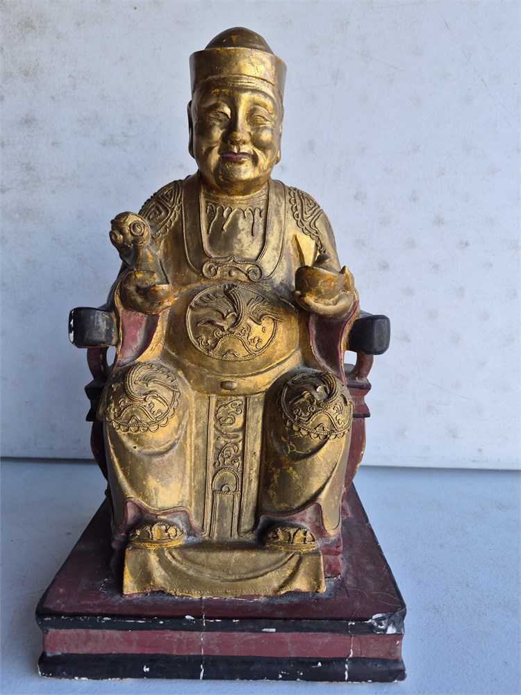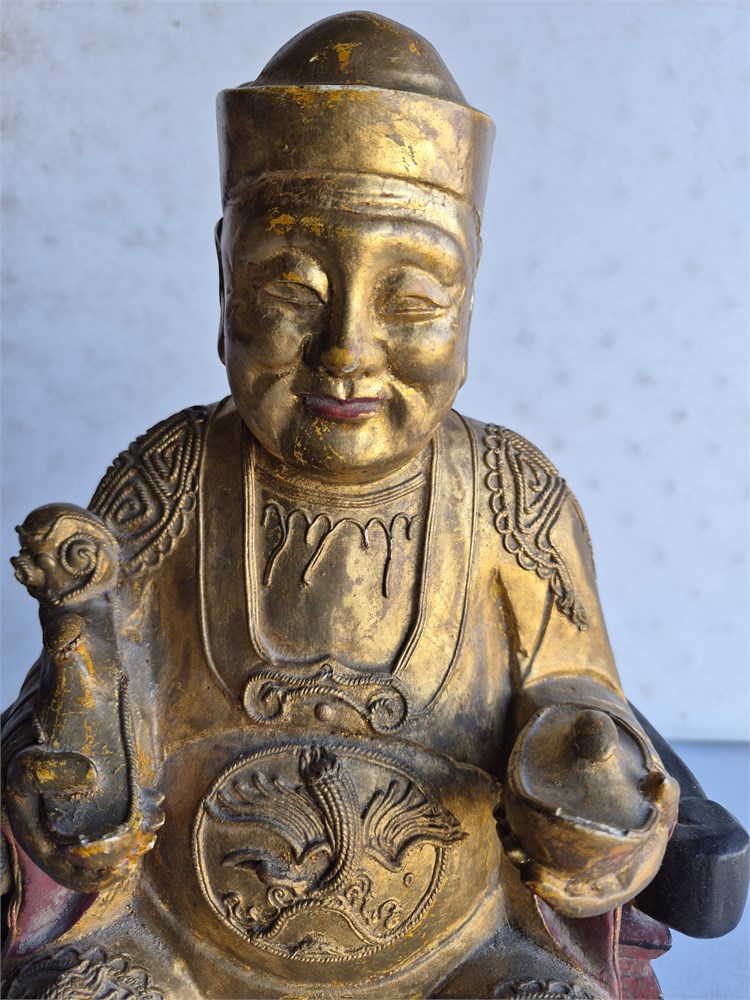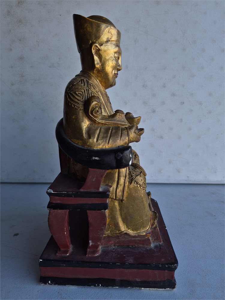 Early Chinese Gilt Lacquer Wood Carved Temple Seated Buddha Statue. Statie measures 15" tall