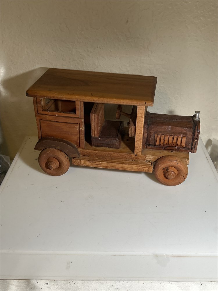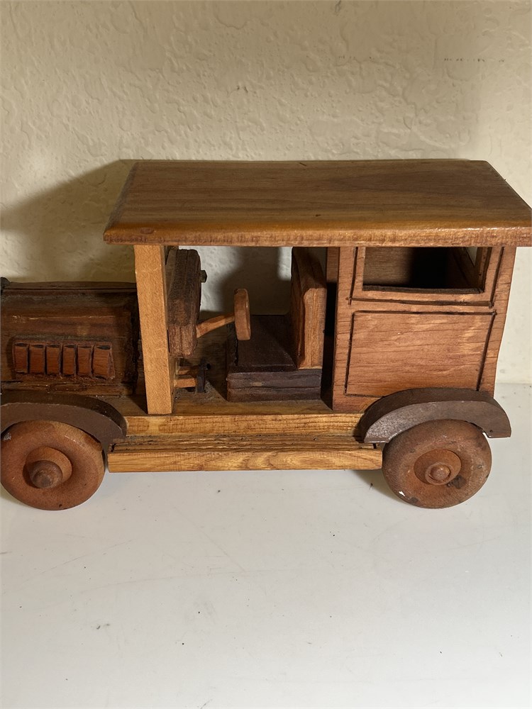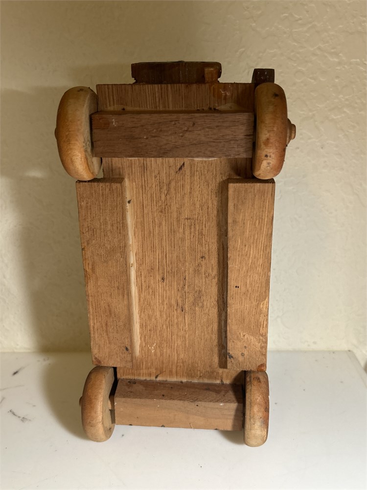 Rare Vtg Hand Carved Wooden Toy Car Rolling Wheels(LB)