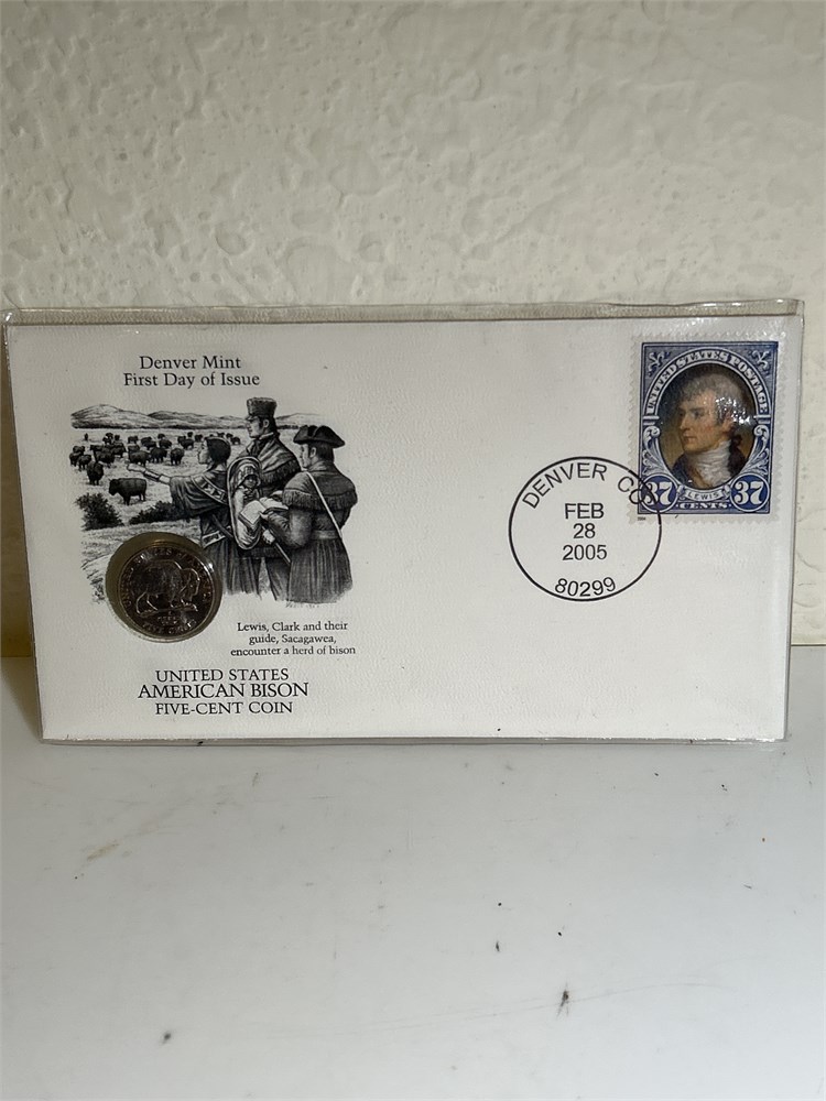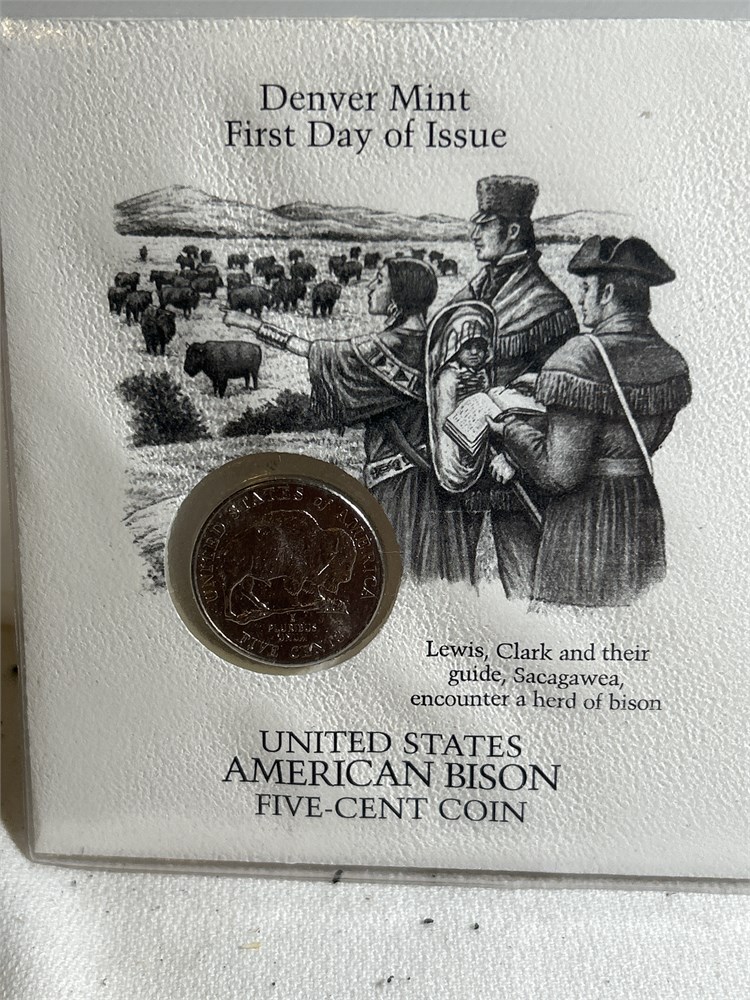 Denver first day of issue, United States, American bison  Five cent  coin
