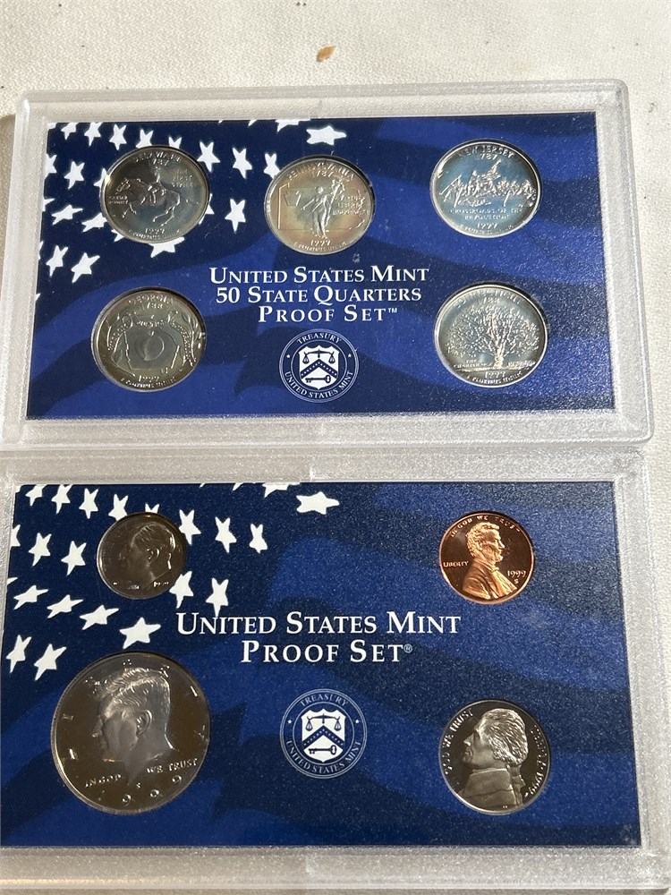 United States mint Proof set  1999 uncirculated half dollar nickel penny dime And 5 Quarters