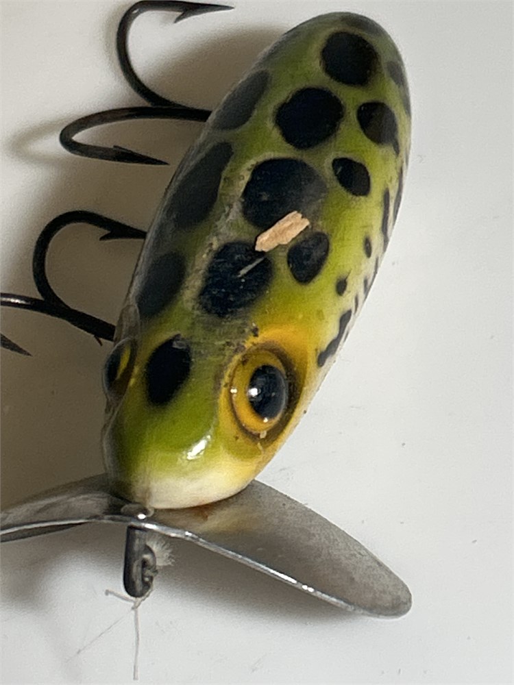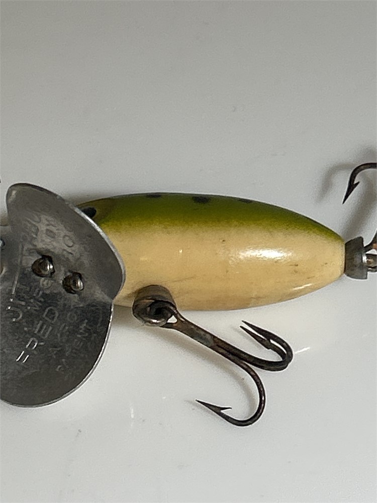 Vintage Fred Arbogast Jitterbug Green Block Spotted Lure(L)