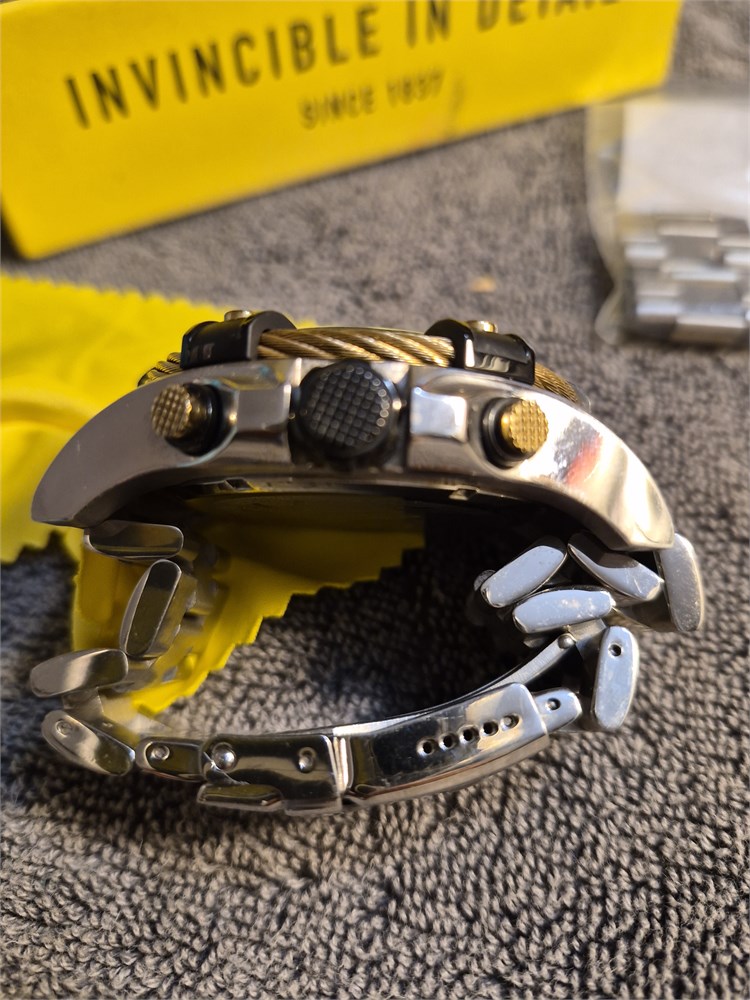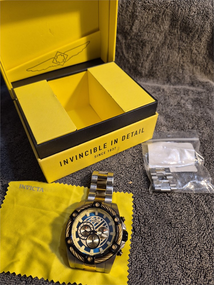 Invicta Men's 38957 Bolt Quartz Chronograph 52mm Blue Dial Two Tone Watch. Comes with box and links for watch band.