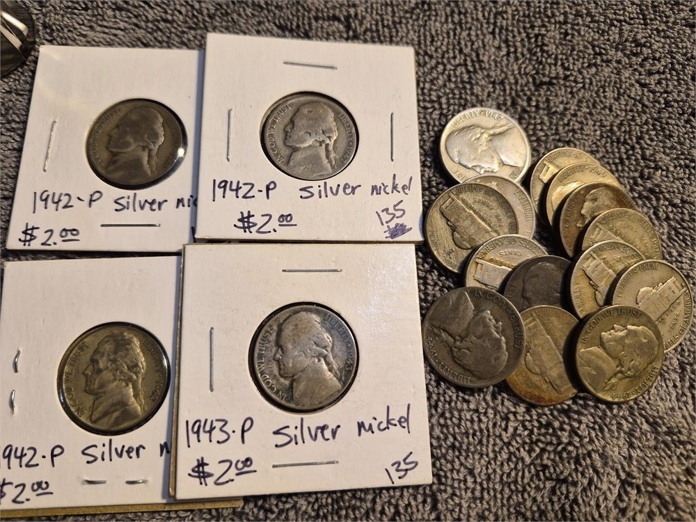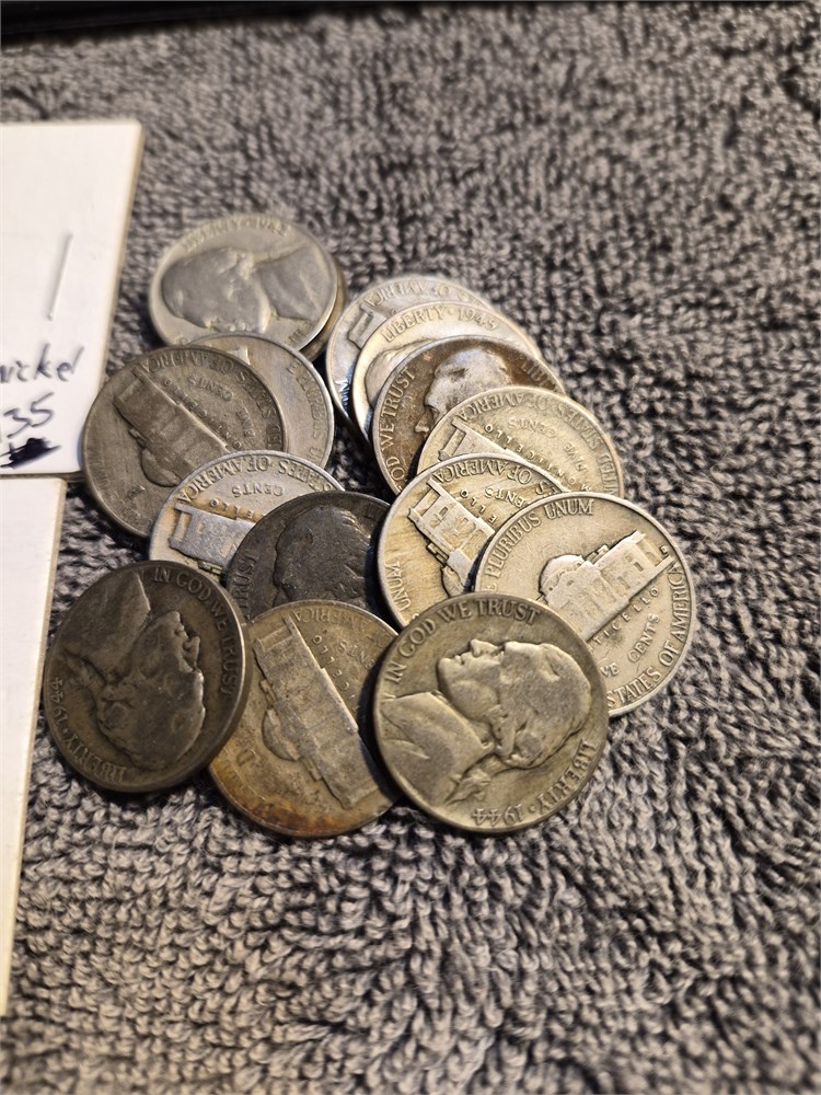 Lot of 19 War Nickles. All jickles are dated 1942-45. Each is 35% silver.