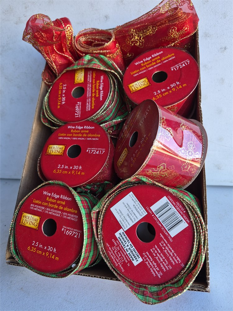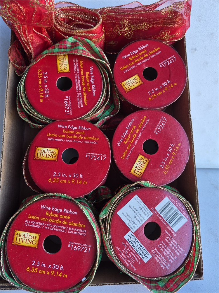 Lot of wire Edge ribbon. There are six nearly full rolls of ribbon plus 3 additional remnants.
