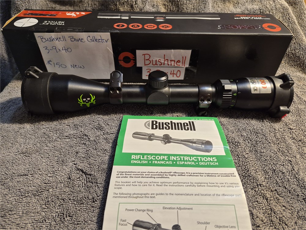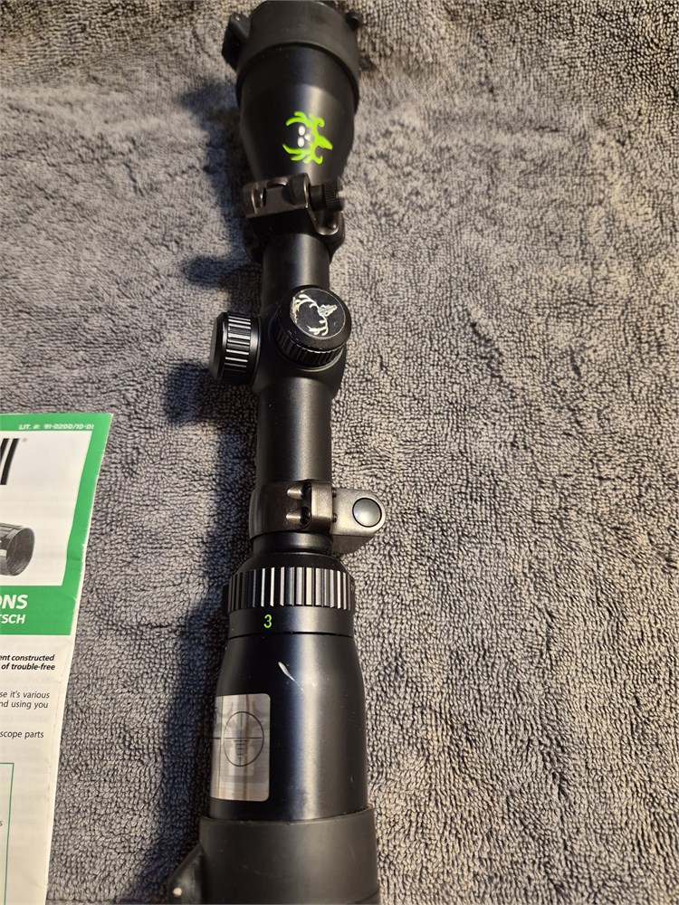 Nice Bushnell DOA 3-9x40 rifle scope. Scope is used but in very good condition. Comes with instructions. Does not include the original box.