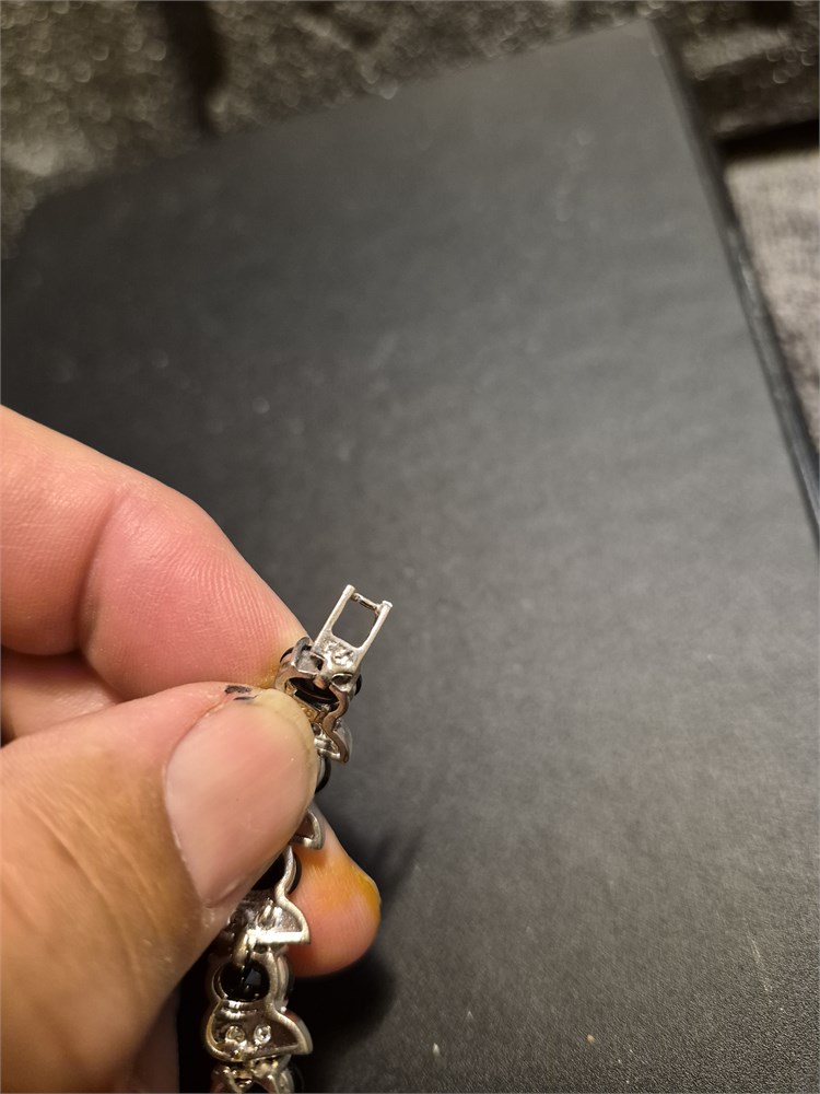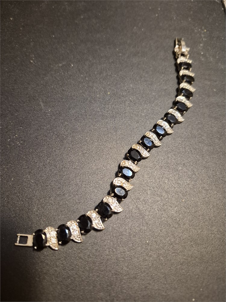 Very nice sterling silver black onyx and rhinestone 6-in bracelet. Bracelets overall weight is 17.6 g.