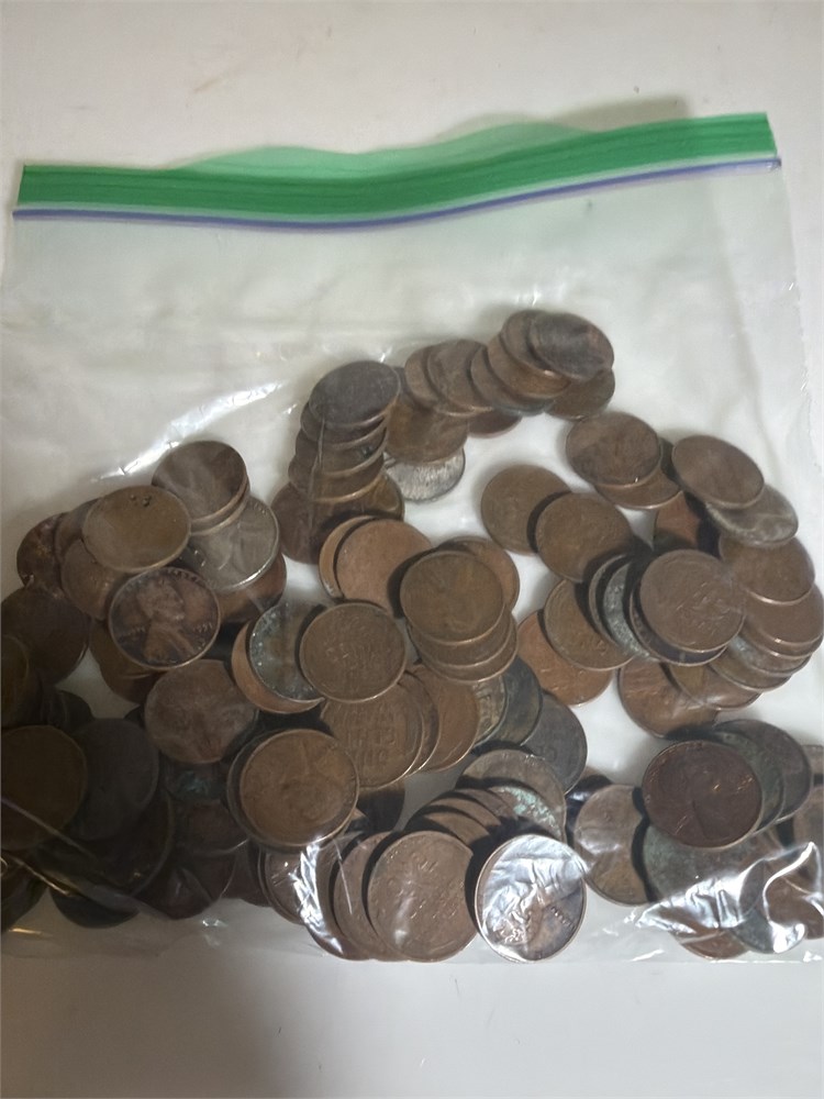 1.5 pounds of wheat pennies in a Ziploc bag assortment