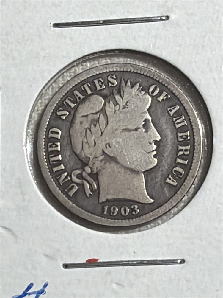 Barber dimes in card 1903 o, 1940, 1911, and 1939 all in very nice shape
