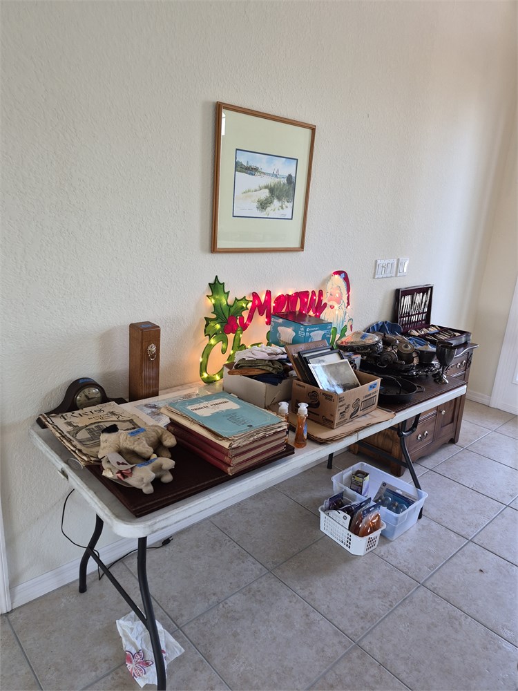 Contents of nice house located in Punta Gorda. Includes Furniture, Dishes, Kitchen Items, Patio Furniture,  Tools, Antique Phones, Old Books, Collectibles and much more.