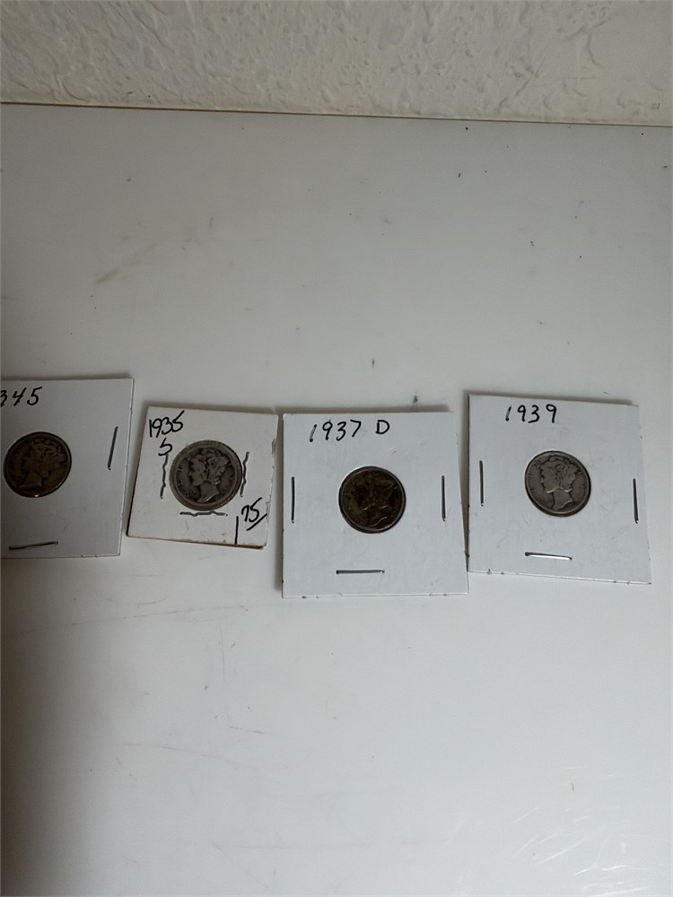Barber LS dimes in cards 1945, 1935S, 1937D and 1939 all in very nice shape very collectible