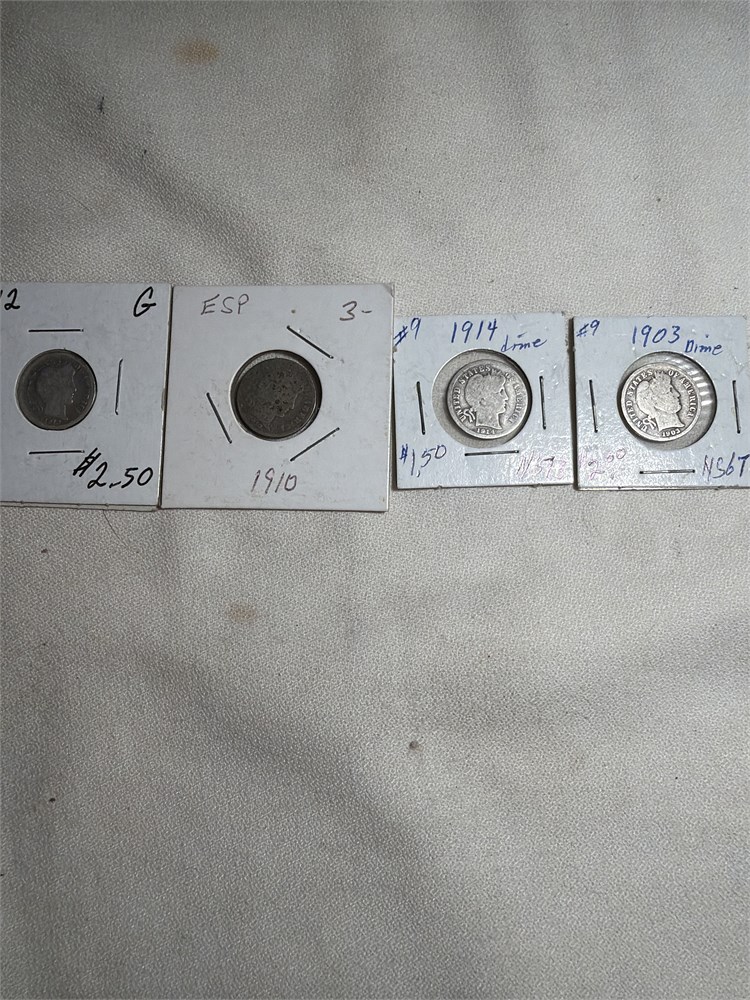 Vintage assortment mercury dimes 1912, 1910, 1914, and 1903 all very rare