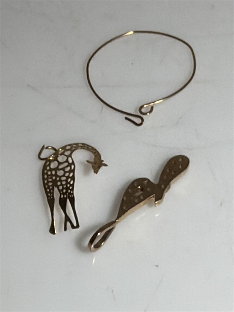 1.81 g 14 karat gold, charms, giraffe, and penguin with hoop