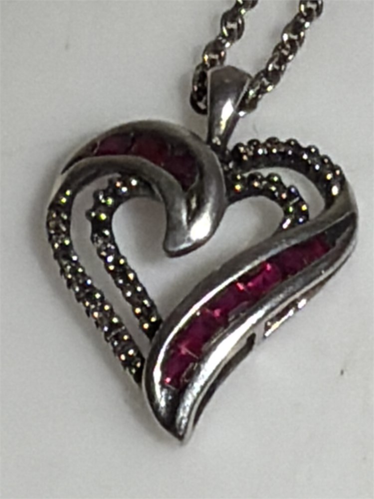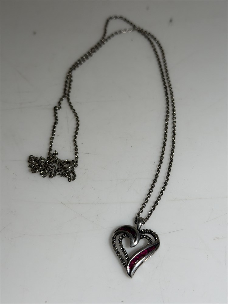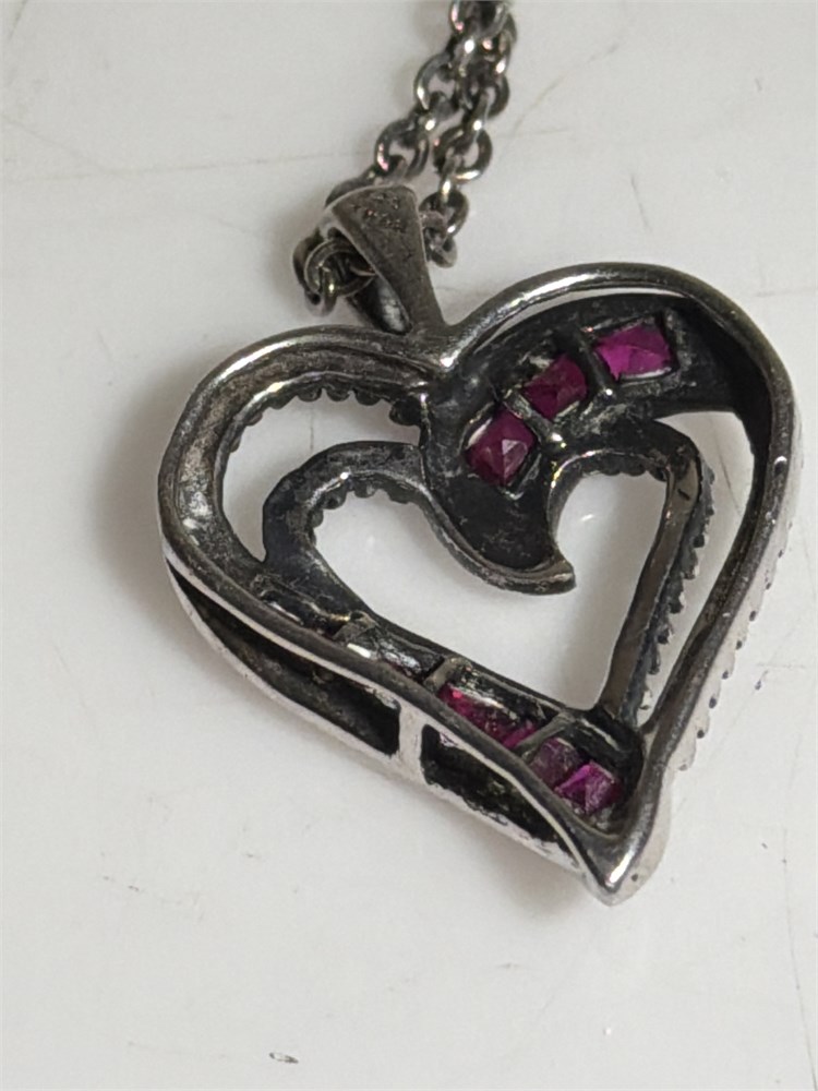 Sterling silver red silver heart with chain (L)