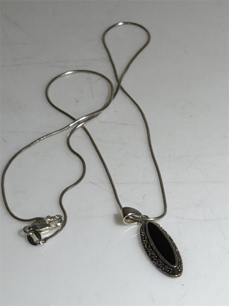 Sterling, silver vintage charm, black Onyx stone very nice peace