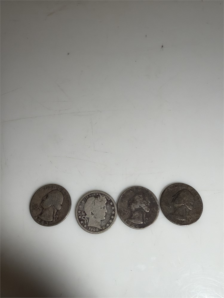Washington Quarter (90% Silver) 1943, 1944 and 1942/ One barber quarter 1908