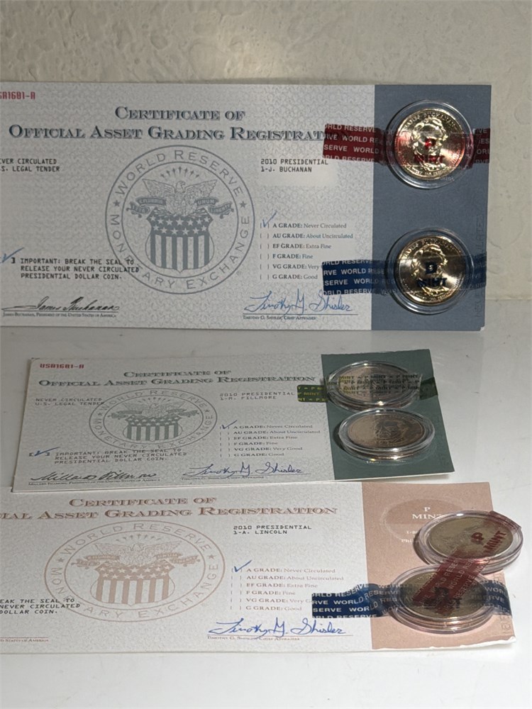 2010 World Reserve Monetary Exchange Presidential $1 Coin Lot of 3 (L)