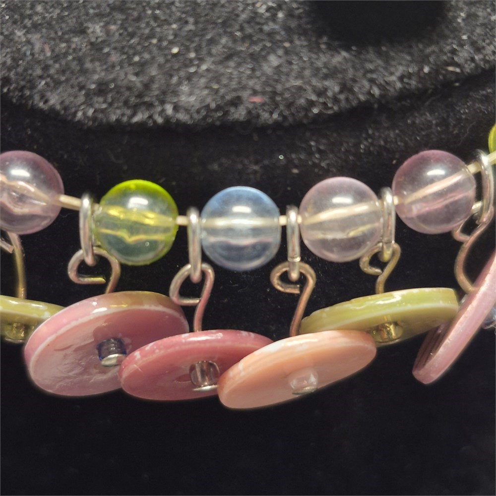 Sterling silver chain bracelet, covered with colorful multicolored buttons on sterling silver headpins.