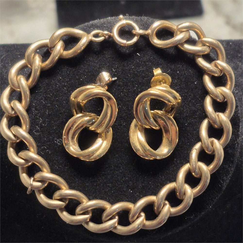 MONET gold tone bracelet & intertwined Earrings [VC]
