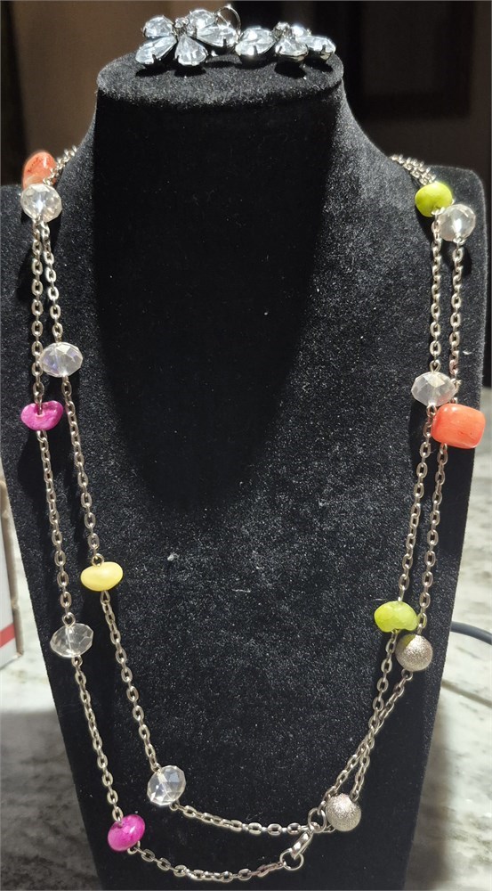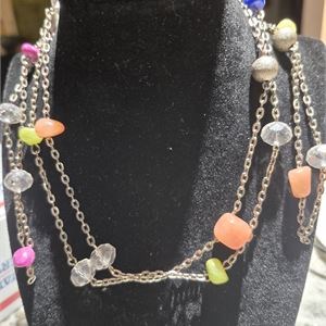 Lia Sophia 36 inch long silver tone necklace with various colored beads