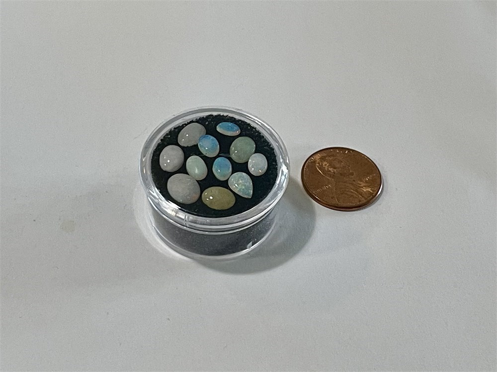 Loose small opals in acrylic jar - assorted shapes and great colors.
