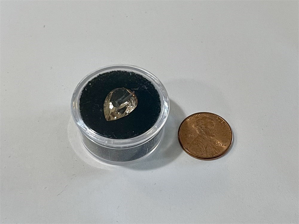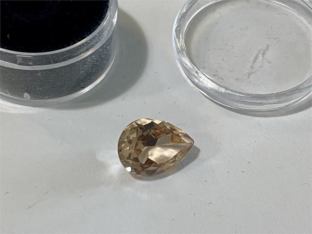 A large loose gemstone (unidentified, it's a delicate/pale color), carefully removed from gold jewelry and in good condition.