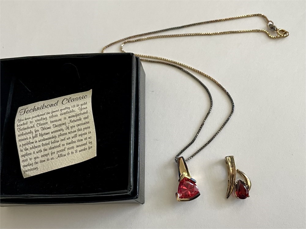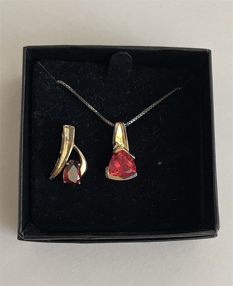 You can wear either pendant on the chain.  All 3 pieces are marked 925 for sterling silver.  There is an 18K gold "Technibond" overlay and it appears to be wearing through.