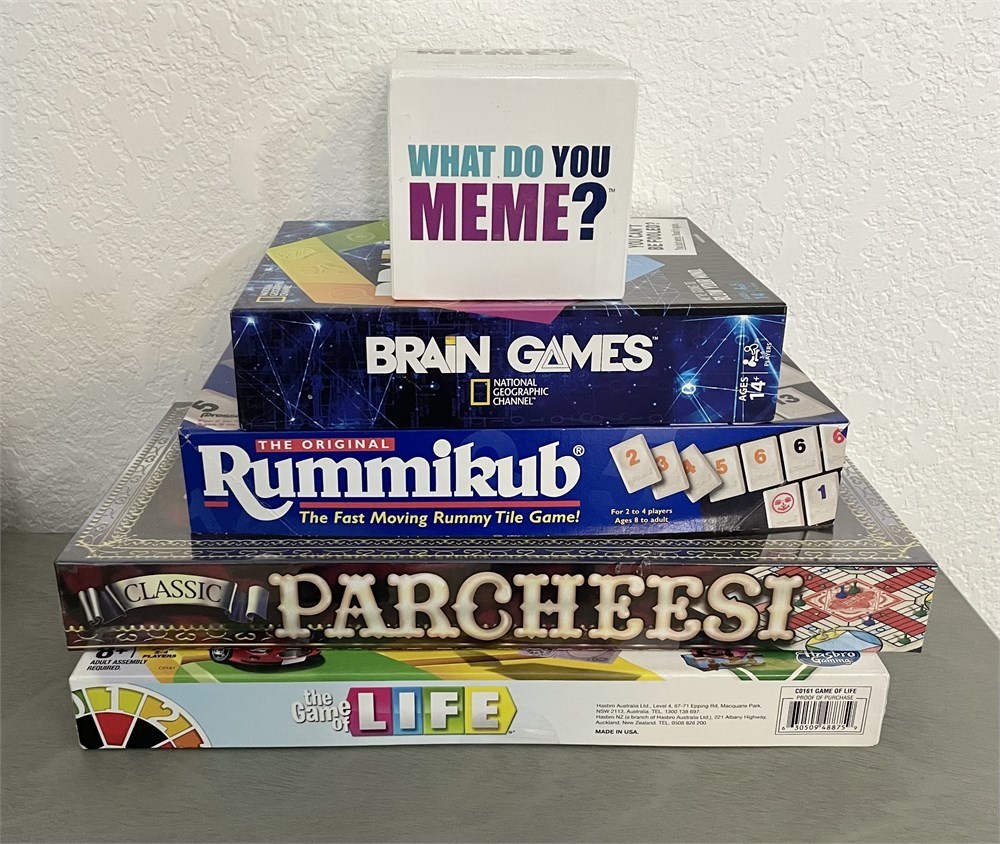 Have some family fun over the holidays!  Good condition games; the Parcheesi is unopened.