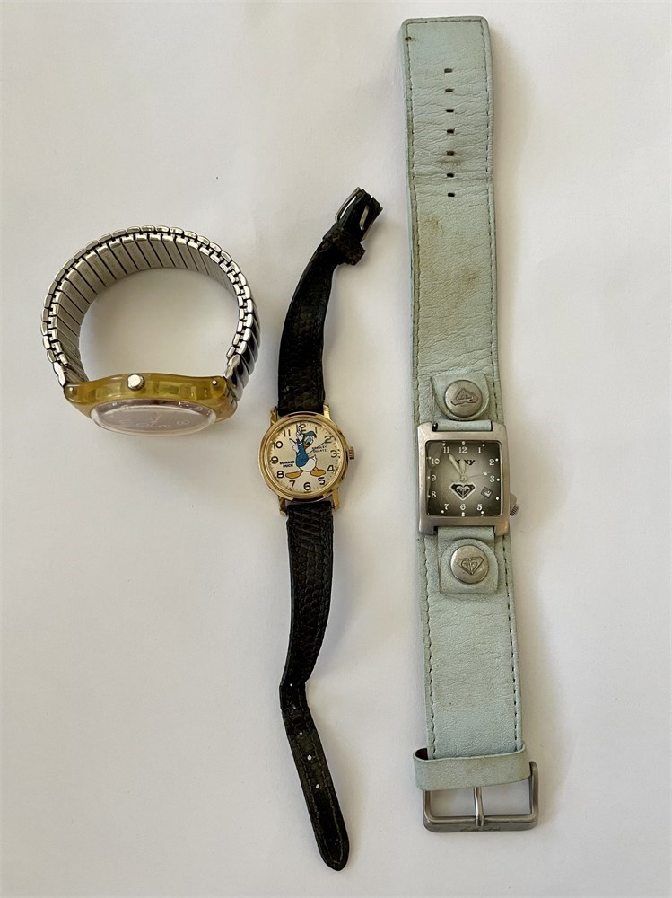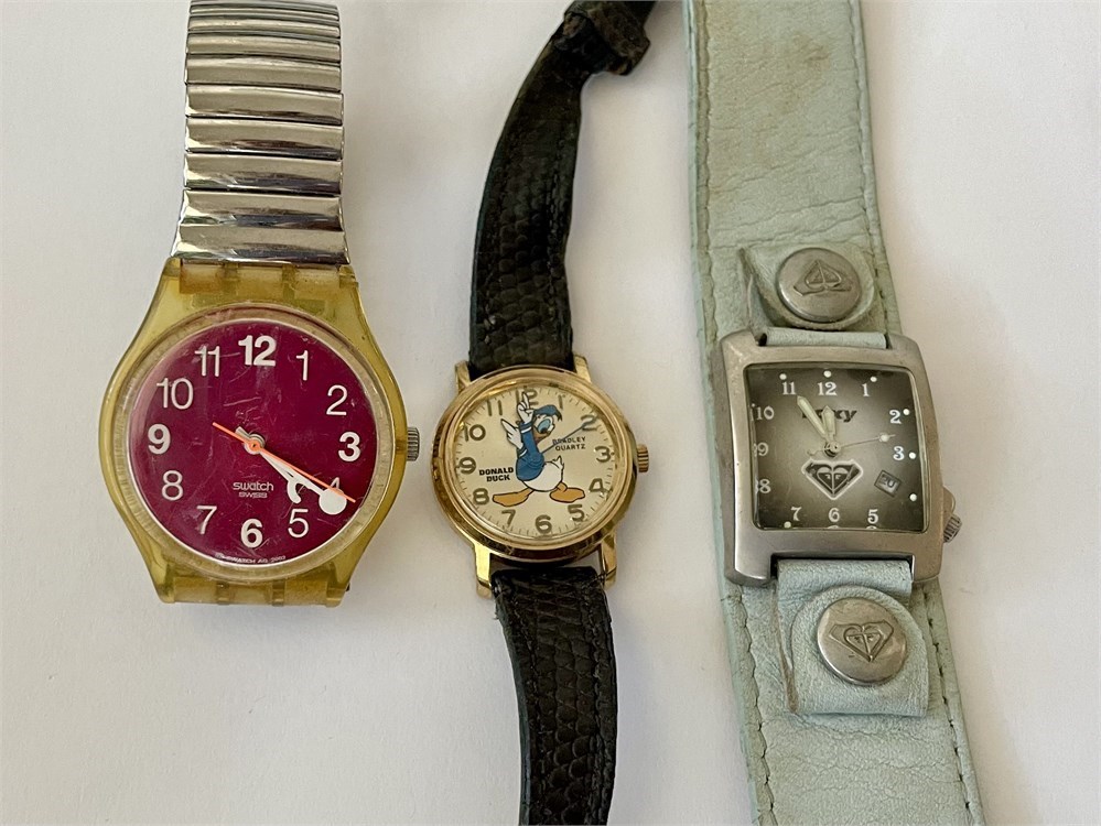 3 Collectible Watches: Swatch, Donald Duck, Roxy