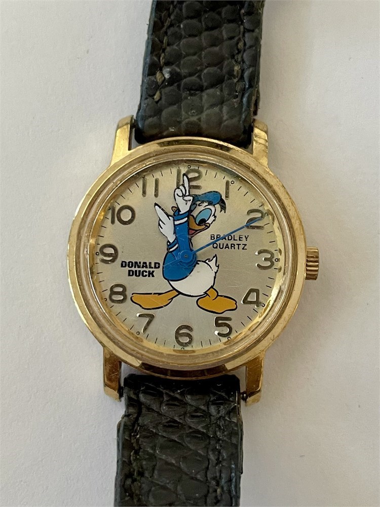 Donald Duck quartz watch by Bradley from the 1980's (commemorative edition), misshapen band.