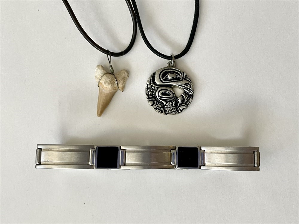 Gent's Bracelet, Fredrick Canadian Indigenous Pendant, Shark Tooth Necklace