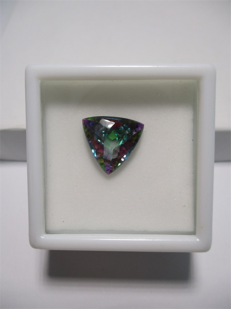 Beautiful, Mystic Topaz, Loose Stone, approx. 5.2 ct, Trillion Cut, 12x12 MM, In Box. Lot AA