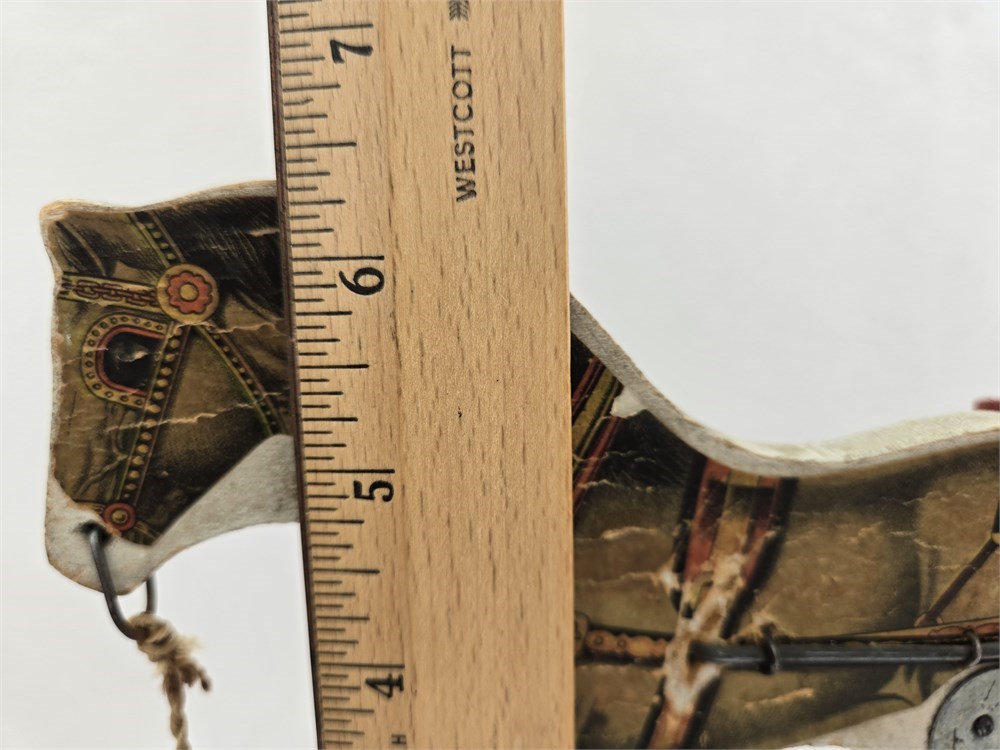Measurements: approx. 14–15" long, horse about 6–7" tall.