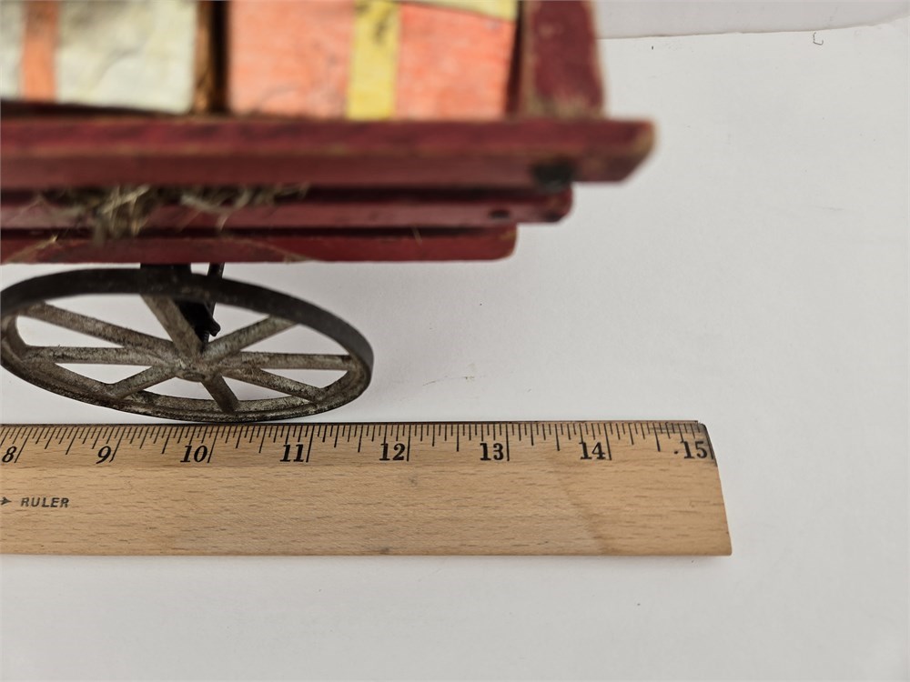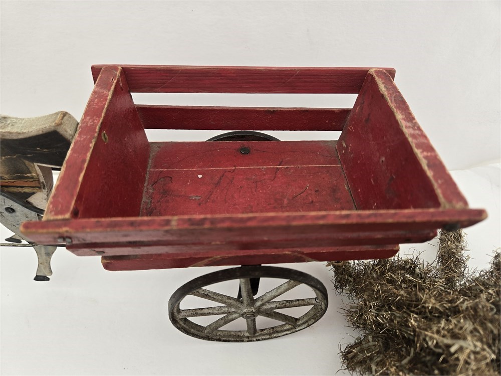 ANTIQUE Horse-Drawn Christmas Wagon Pull Toy + more! GREAT LITHO WORKS PERFECTLY