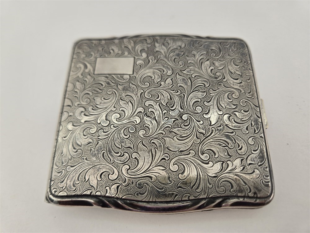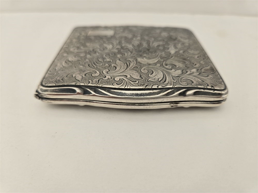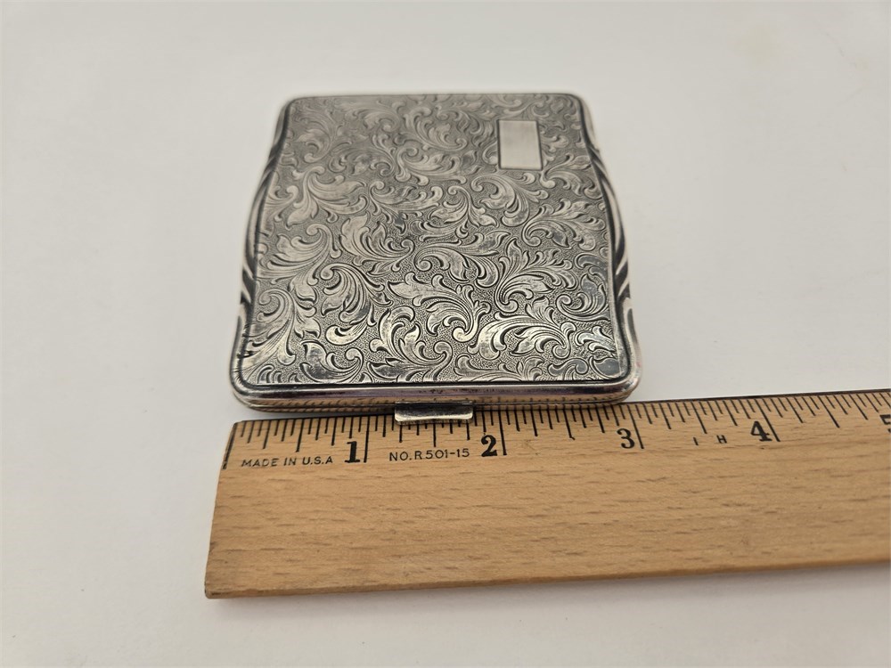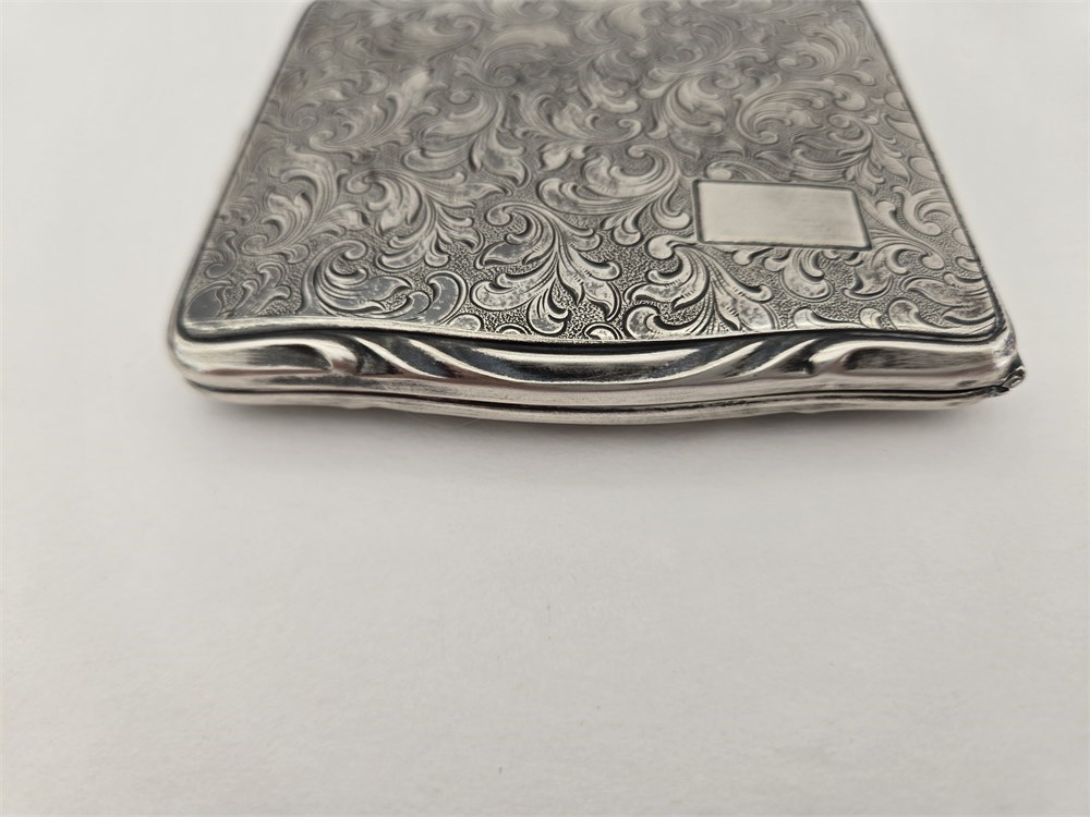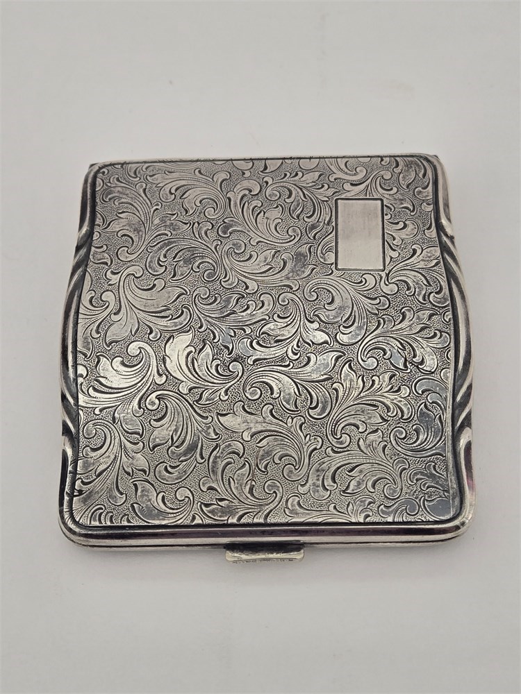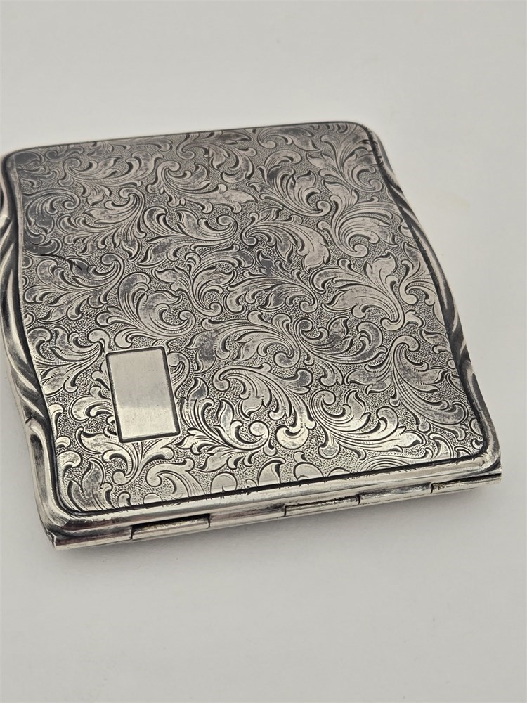 Vintage German “HOKA” Alpacca Cigarette Case – Engraved Scrollwork, Art Deco Form, Original Interior