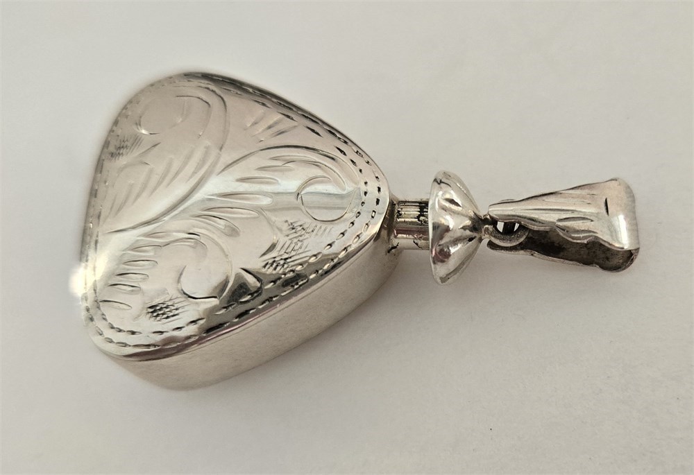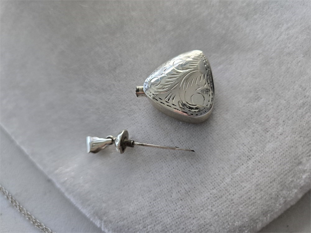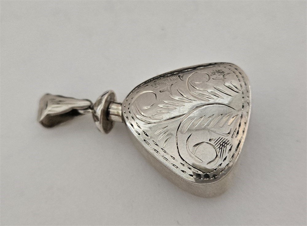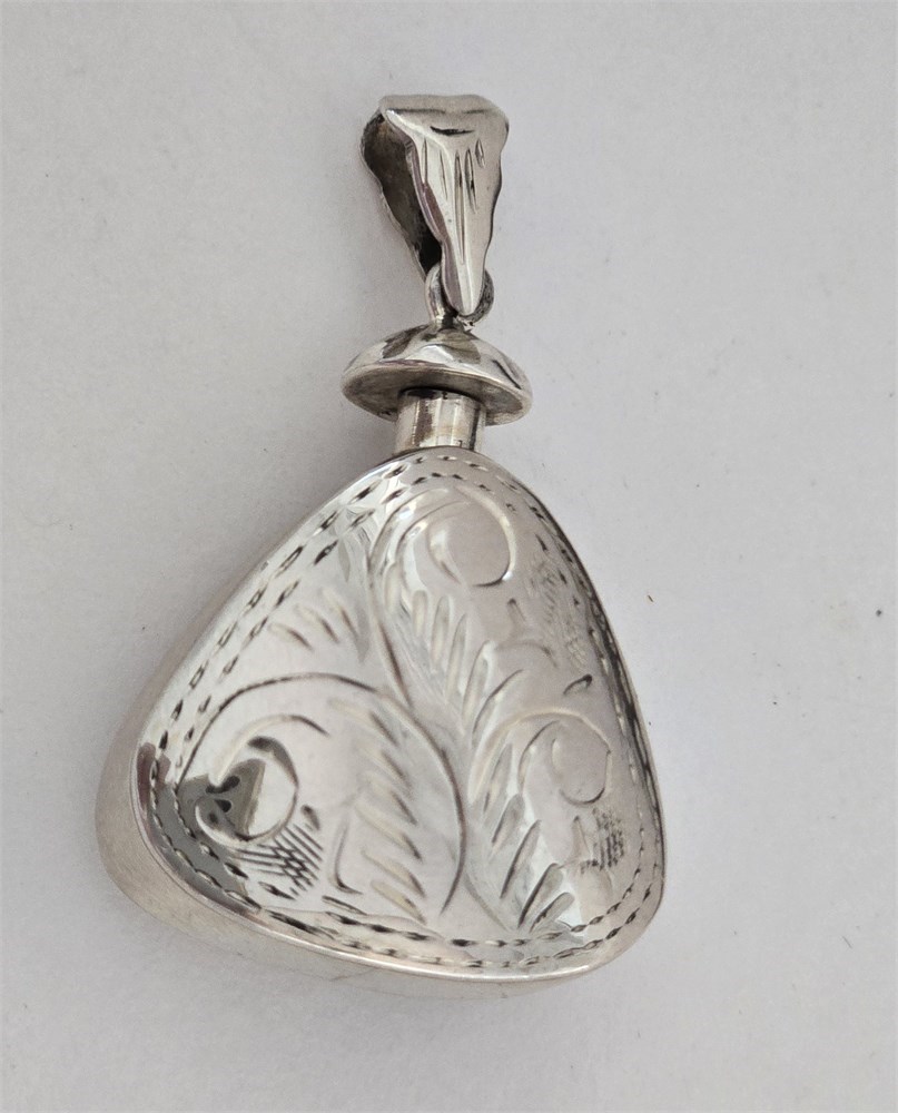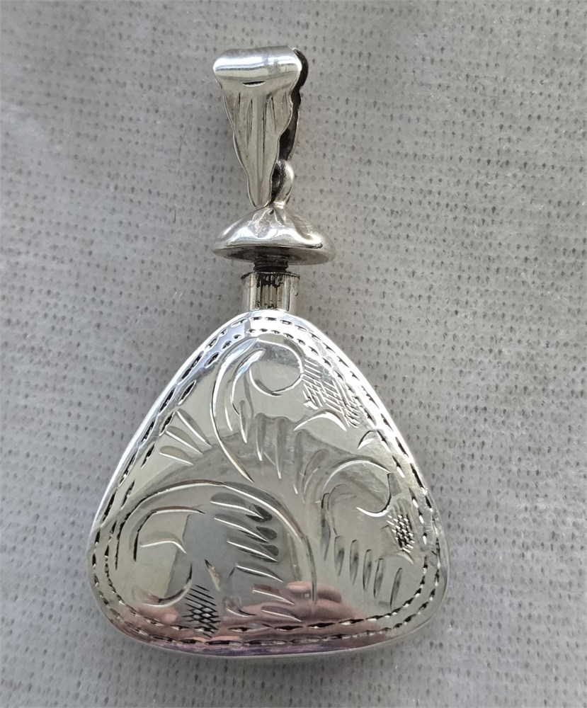 Vintage Hand-Engraved Sterling Silver Perfume Bottle Pendant – Triangular shape