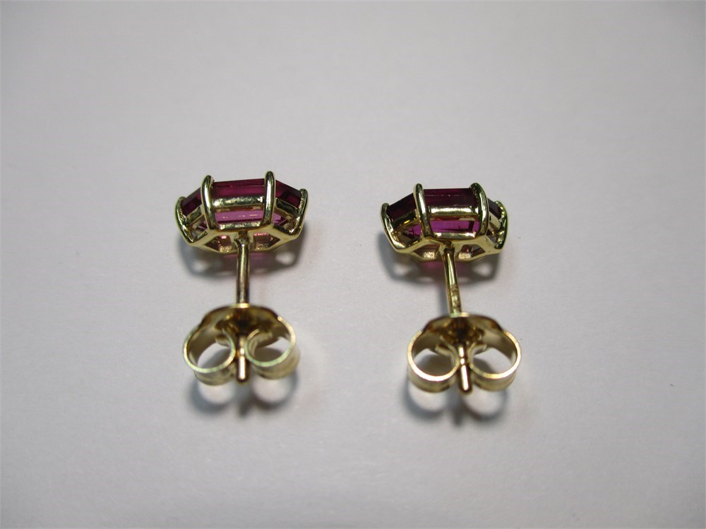 This is a Beautiful pair of 10K Yellow Gold, Hexagon Grape Garnet Stud Earrings. Butterfly clutch. 1.28tw.  India.