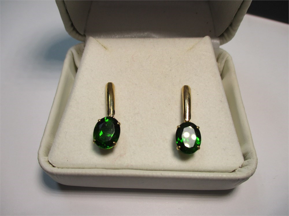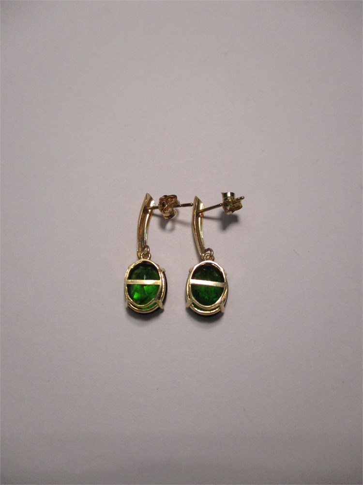 This is a Beautiful pair of 10K Yellow Gold, Faceted Oval Emerald Dangle Earrings. Butterfly clutch. 1.43 tw.  U.S.