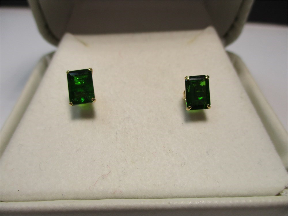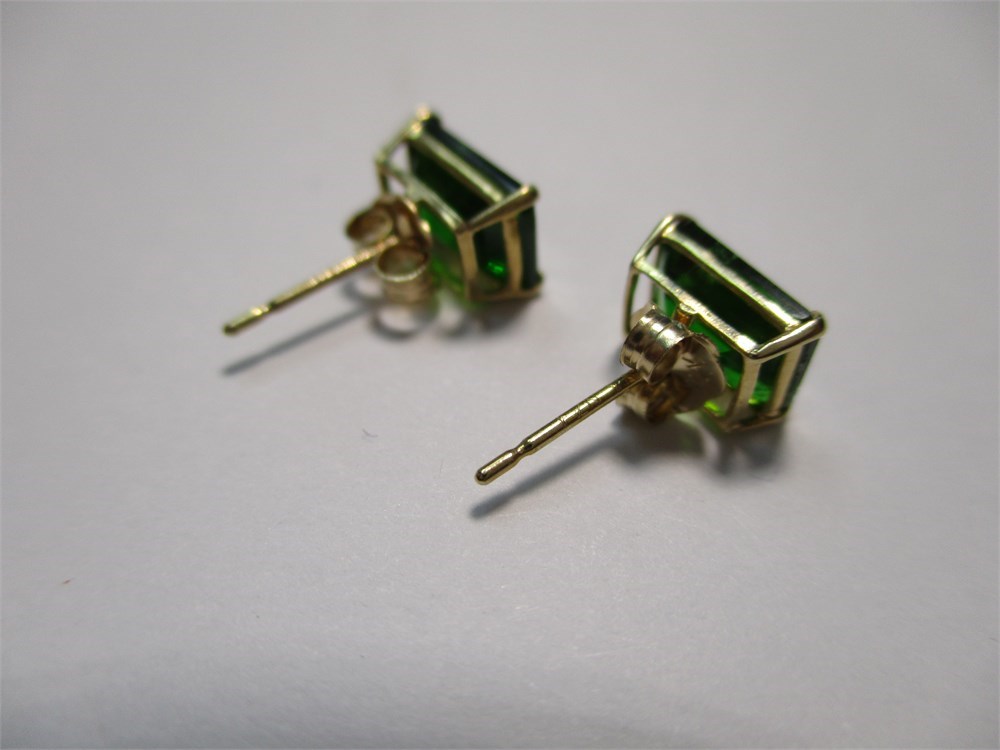 10K Yellow Gold, Emerald Cut, Faceted Emerald Stud Earrings