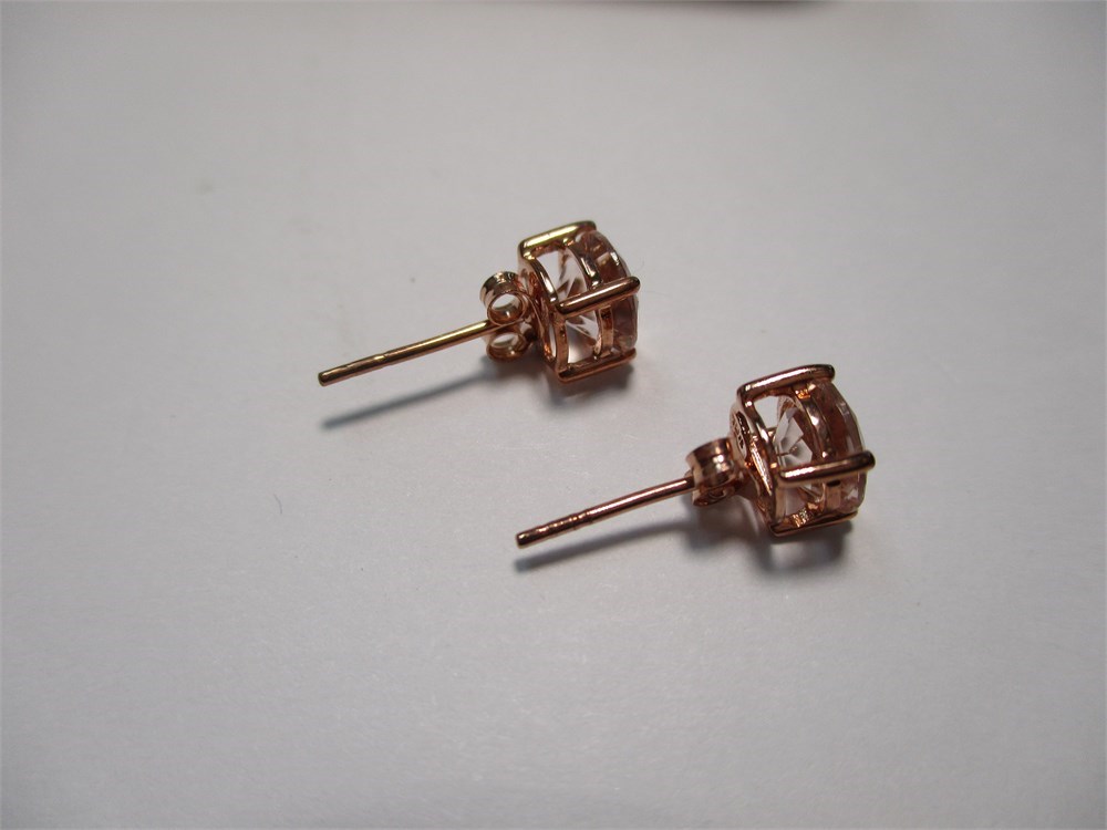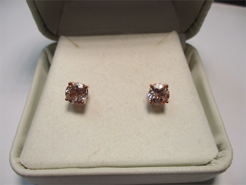 This is a Beautiful pair of 10K Rose Gold, Round, White Tourmaline Stud Earrings. Clutch back. .93 tw. Thailand.