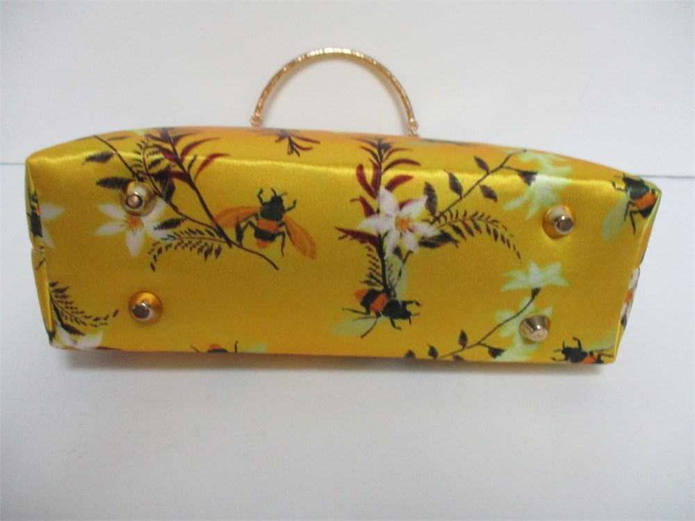 Gold Satin, Bee and Floral Handbag w/ Additional Chain